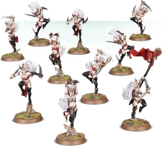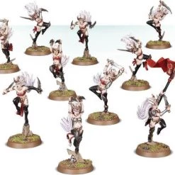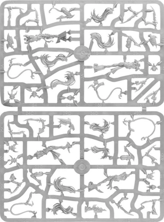 The Witch Aelves come as 67 components, and are supplied with 10 Citadel 25mm Round bases and a banner transfer sheet. This kit can be optionally used to assemble 10 Sisters of Slaughter.