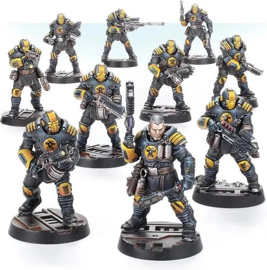 Om hen bij hun taak te helpen, hebben Palanite Enforcers een indrukwekkend scala aan wapens waaronder shotguns, boltguns, autopistols, stub guns, sniper rifles en shock batons. De modellen zijn ontworpen met een grote hoeveelheid vari?teit en opties in assemblage, wat betekent dat elke Enforcer uniek kan zijn. In totaal vind je: