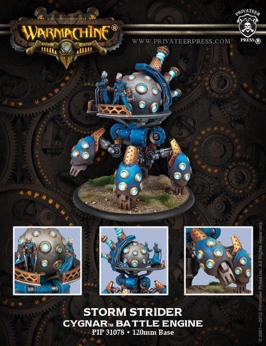 Towering above its enemies, the lightning-wreathed Storm Strider moves across the battlefield raining voltaic death upon all who stand against Cygnar. Its lightning cannon is one of the most potent weapons in the Cygnaran arsenal and represents the pinnacle of stormsmith achievement. More devastating still is the Storm Strider’s ability to capture and store the energy of enemy attacks, adding this deadly kinetic force to its withering lightning blasts. Assembly Guide