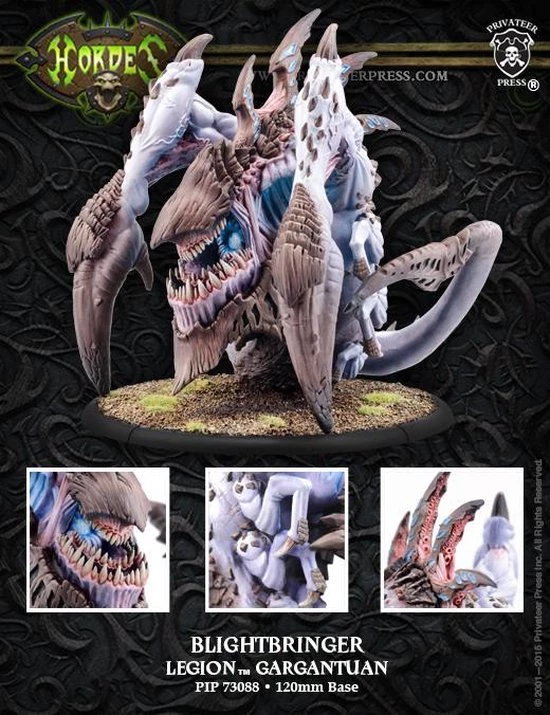 Shrouded by a cloud of blighted ash, the Blightbringer burns with an inner fire like that of the dragons themselves. Hails of gunfire disappear in the billowing haze, and the dragonspawn?s overwhelming emissions smother the talents of enemy spellcasters. So hot are the fires burning within that the very blood pumping through its veins remains at a perpetual boil. The Blightbringer is the flame around which the legion gathers, while the empires of men and dragons tremble at their approach.