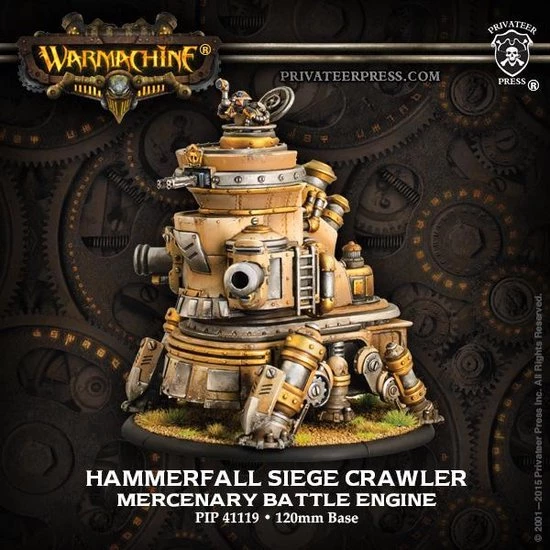 A testament to the engineering brilliance of the Rhulfolk, the Hammerfall Siege Crawler paves the way for assaults on hard targets. Firing its thunderous siegebreaker cannons to crack open fortress walls and pulverize enemy armor, the Siege Crawler is a mobile artillery battery worthy of the reputation of Hammerfall?s renowned mercenaries.