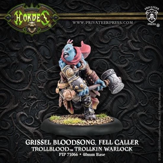 Fell Callers are powerful Trollkin warriors boasting voices capable of shattering stone and making the sky itself tremble, and Grissel Bloodsong has singular mastery of this ability.