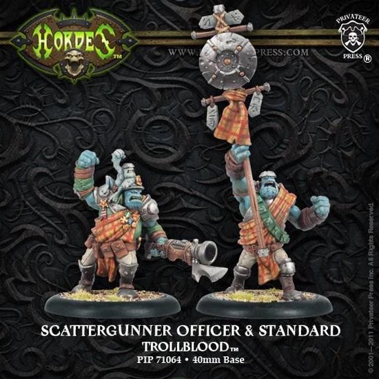 Contains: 1 Trollkin Scattergunner Officer, 1 Trollkin Scattergunner Standard Bearer