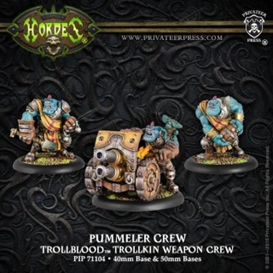 Thumper and pummeler cannons are the most powerful mobile artillery possessed by the Trollbloods. Originally naval cannons donated to the kriels, thumpers fire devastating cannonballs that punch through walls of enemy fortifications and flatten their warbeasts. The trollkin-designed pummeler instead fires devastating chain shot used for breaking troop formations from a distance, ideal for thinning enemy lines and mowing down anything in its firing arc.
