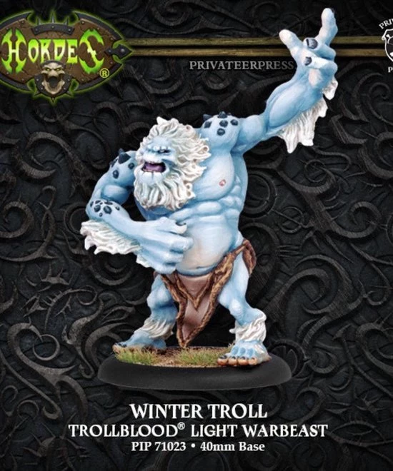 Long feared by all who dwell in the frozen northern regions, this fierce troll happily endures extreme cold that would slay most living things. At one with ice and snow, winter trolls expel great gusts of frozen air that rip foes apart. Even striking a winter troll?s flesh prompts a backlash of intense cold that paralyzes its opponents.