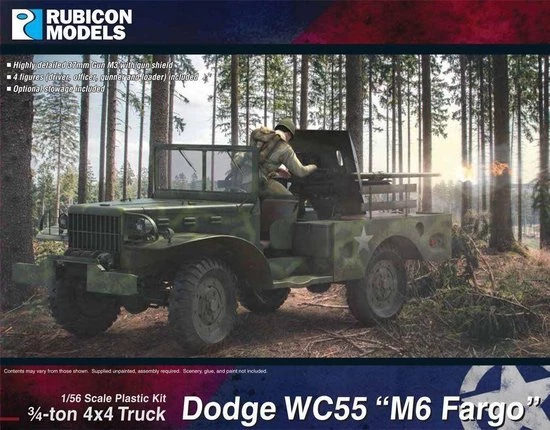 The WC55 Truck, 3/4 ton, 4×4 Gun Motor Carriage Dodge (G502) was a modified WC52 designed to carry an M3A1 37mm anti-tank gun and shield mounted on its cargo bed; the WC55 and gun combination was designated M6 Fargo Gun Motor Carriage (GMC) with 37mm Anti-tank Gun (G121) with a payload of 80 round of 37mm ammunitions. 5,380 built, most of them later dismantled and returned to service as WC52 cargo trucks.