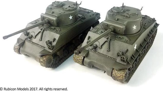 This kit contains the parts to build either an early or late version of the M4A3(76mm)W, or an M4A3E8 with HVSS suspension. It also includes an optional set of tracks fitted with extended end connectors. The hull and cupola hatches are separate, and a commander figure and stowage items are included.