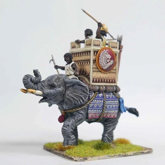 High quality 28mm miniatures. This superb set contains 2 x 28mm elephants and crew options for Carthaginian, Roman, Ptolemaic and Numidian crews
