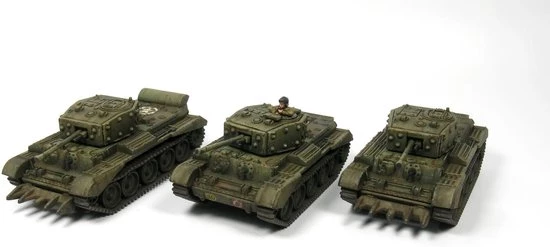 This set includes 6 superbly detailed 12mm/1:144 tanks and a decal sheet (Allied stars and British names beginning ABC). The Cromwell was the most common British tank that fought in North West Europe in 1944-45. One of the fastest tanks of the war with a top speed of 64kph but was geared down to stop excessive engine wear. Armed with a 75mm gun, this was the best British tank of WWII.