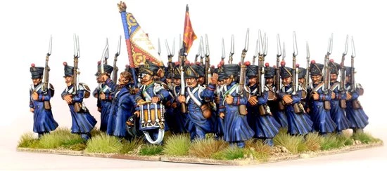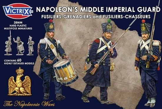 The set contains 60 figures represent Naopoleon’s Middle Guard, ‘Fusiliers- Chasseuirs’ and ‘Fusiliers-Grenadiers’ but can also be used for many other of Napoleon’s Elite units in campaign dress: