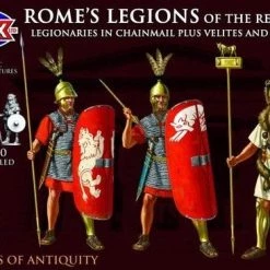 These figure represent Roman legionaries and light infantry, or Velites, of the early Republic. They are suitable for wars with Pyrrhos of Epeiros, the 1st and 2nd Punic Wars against Carthage and the Macedonian Wars against King Phillip V and King Persus. They can also fight Gauls, Spanish, Numidians, Italians and Seleucids.