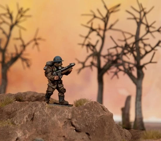 This box set includes enough parts to build 24 hard plastic soldiers that can be equipped with standard infantry rifles, light machine guns, assault rifles, plasma and flame weapons, grenade launchers, and pistols. Four headgear choices allow you to customize your forces.