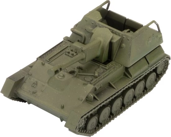 The Soviet SU-76M is an extremely low-cost Tank Destroyer for the budget-conscious commander needing some additional support. It won?t take on the newest, heaviest tanks on its own, but alongside a platoon of aggressive tanks you?ll find it very capable of landing crucial blows. We couldn?t skip out an Self Propelled Gun however, so you?ll also find an entire tank card for the Soviet SU-122A in the box. Using the same model, suddenly your little tank-destroyer has a bigger gun, Firepower 7, and is ready to fling shells across the entire battlefield!