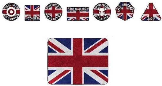 Contains 2x Objective Markers; 2x Ranged In token; 2x Foxholes tokens; 8x Bailed Out/Pinned Down tokens; 3x Gone to Ground tokens; 3x Minefield tokens; 2x Anti-Aircraft tokens; and 1x Leader tokens.