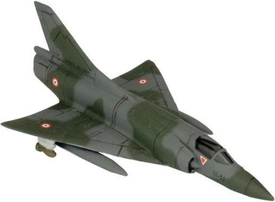 Includes two plastic Mirage 5 aircraft, two plastic Flight Stands, one Decal sheet, and two Unit cards.