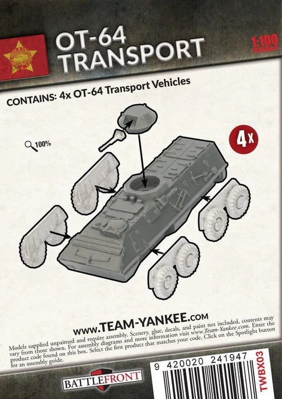 The standard wheeled armoured personnel carrier of the Czechoslovakian People’s Army is the locally designed and produced OT-64. The OT-64 SKOT (Czech acronym for St?ední Kolový Obrn?ný Transportér – medium wheeled armoured transporter) is an amphibious, 8×8 wheeled armoured personnel carrier developed jointly by Poland and Czechoslovakia.
